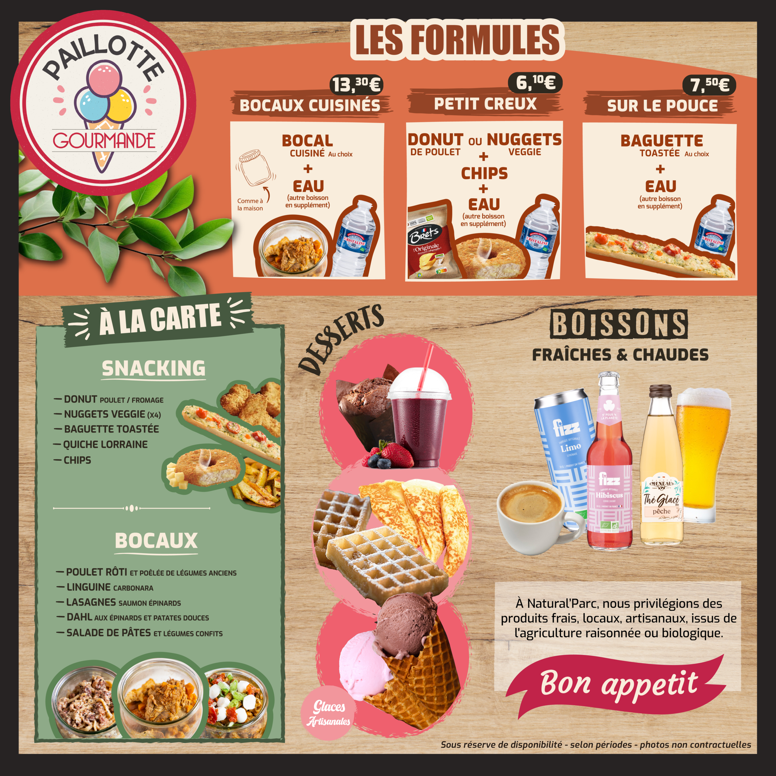 À Natural’Parc, nous privilégions des produits frais, locaux, artisanaux, issus de l’agriculture raisonnée ou biologique.